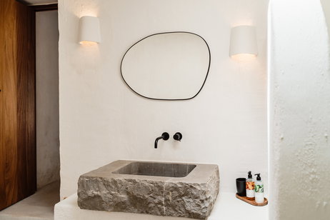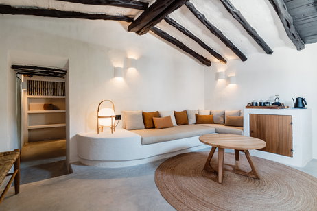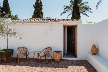 Intimate suite with front garden, on the side of the corrals, to find privacy and enjoy free time. Typical ibizan architecture with a cozy low roof bedroom.